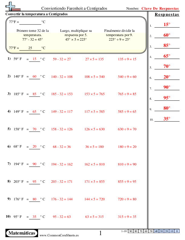 ¿Buscas las mejores hojas de trabajo sobre temperatura en internet? ¡No busques más! Nuestras hojas de trabajo sobre temperatura son perfectas para ayudar a los estudiantes a aprender sobre temperaturas, termómetros y conversión de Fahrenheit. Con nuestras hojas de trabajo gratuitas sobre temperatura, puedes estar seguro de que tus estudiantes adquirirán un pleno entendimiento de los conceptos de temperatura antes de pasar a temas más difíciles. Nuestras hojas de trabajo cuentan con imágenes y diagramas de termómetros para ayudar a los estudiantes a visualizar el concepto de temperatura mientras practican usando una variedad de fórmulas. También incluimos explicaciones detalladas y ejemplos claros de cómo usar fórmulas al convertir Fahrenheit a Celsius. ¡Estamos seguros de que nuestras hojas de trabajo sobre temperatura facilitarán el aprendizaje de este tema para tus estudiantes!