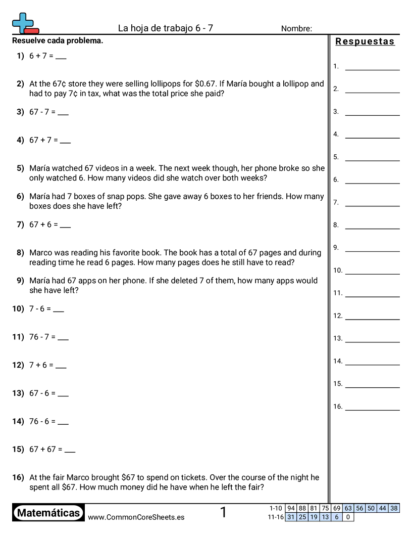 Hojas de trabajo de matemáticas
